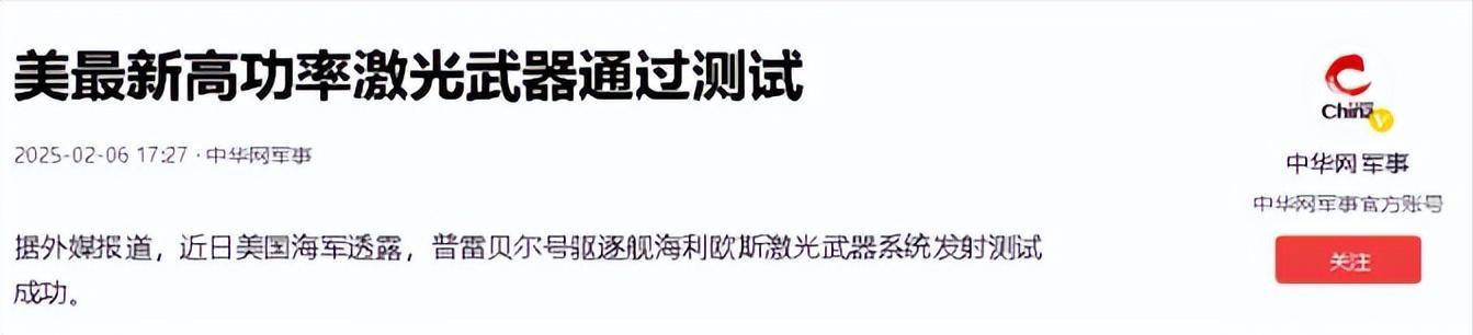 2025年初,美军在太平洋某海域进行了一次代号为“光刃-25”的舰载激光武器测试,一台60千瓦级激光系统,在复杂海况下,精准命中8050米外的高速无人机靶标,创下舰载激光武器实战射程新纪录。